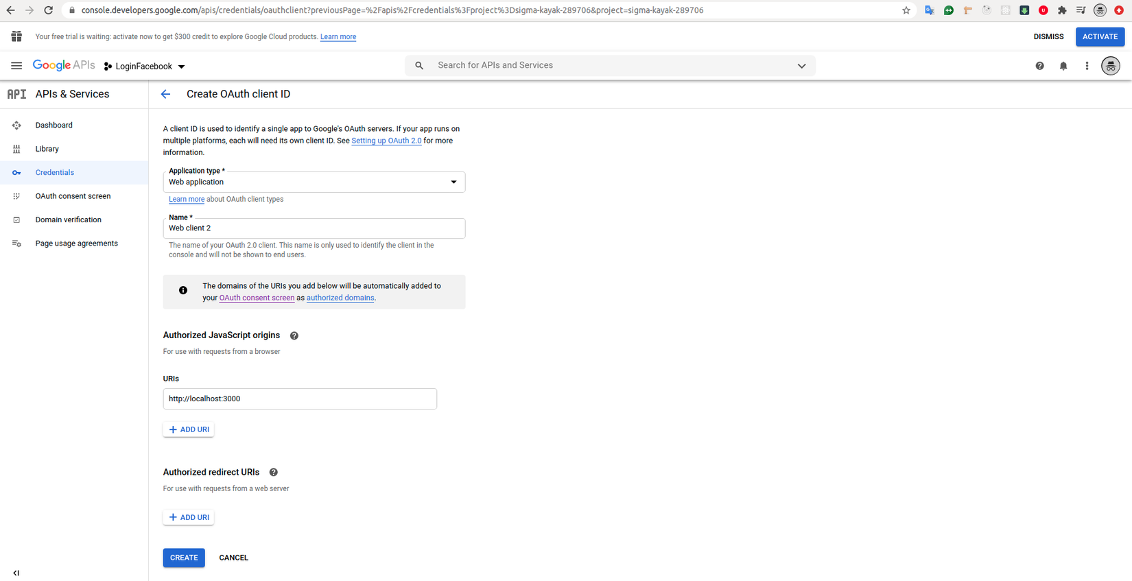 Tiến hành add Authorized javascript origin > Vì ứng dụng chạy trên localhost nên url sẽ là http://localhost:3000/