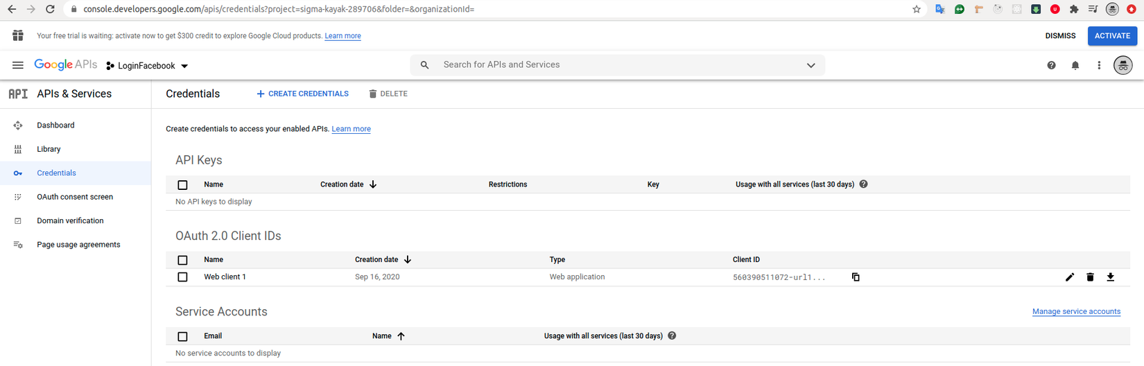 Để có được chúng bạn truy cập đường dẫn: https://console.developers.google.com/apis/credentials