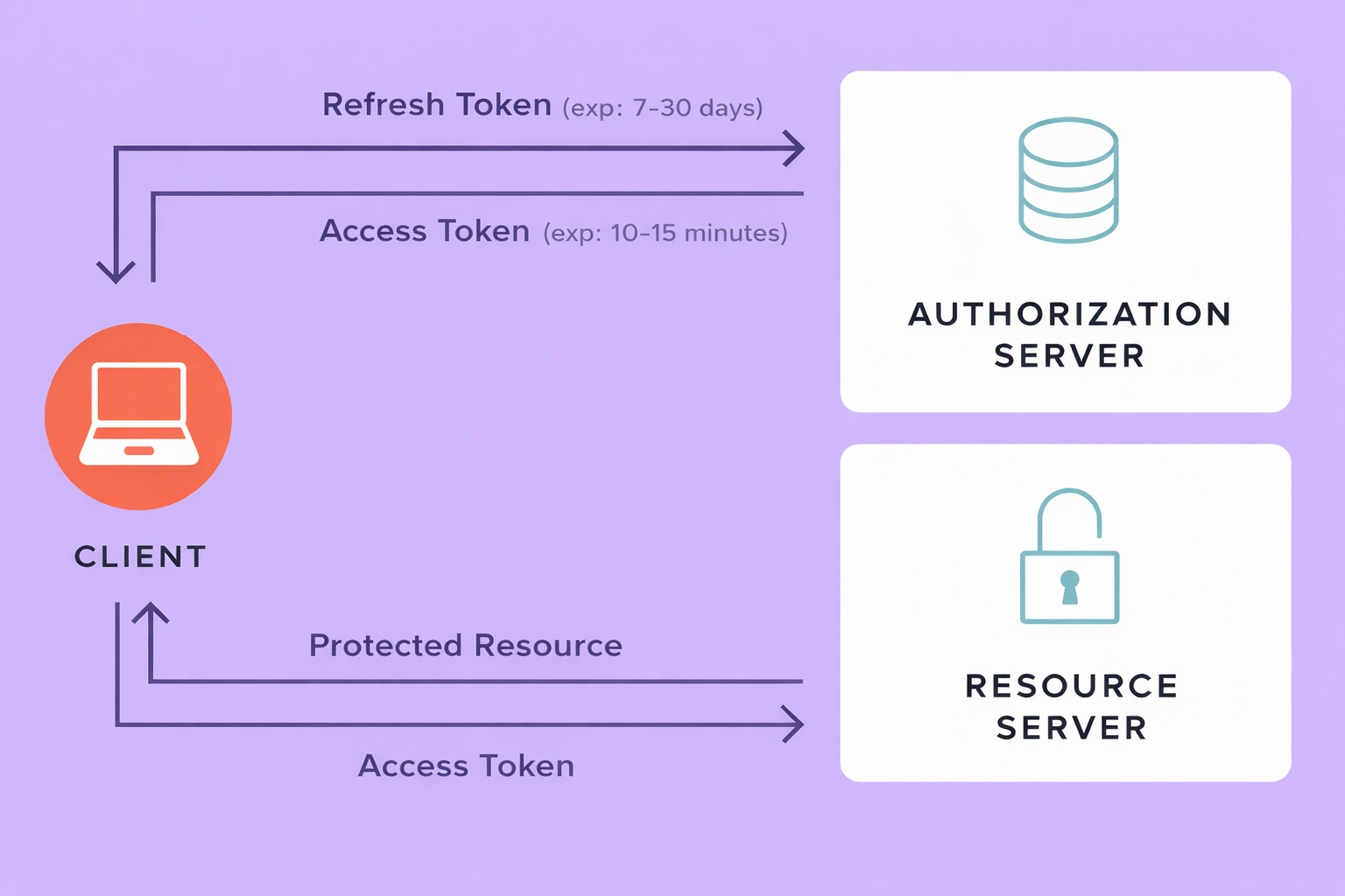 Để giải quyết bài toán "Token sống ngắn thì trải nghiệm người dùng (UX) tệ" ở phần trước, giới công nghệ áp dụng một Pattern kinh điển: Chia quyền lực ra làm hai loại Token.