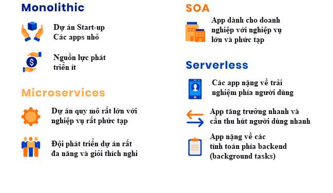Và cuối cùng, hãy nhìn vào hình ảnh sau đây để biết khi nào nên chọn một trong bốn loại kiến trúc mà chúng ta vừa phân tích: