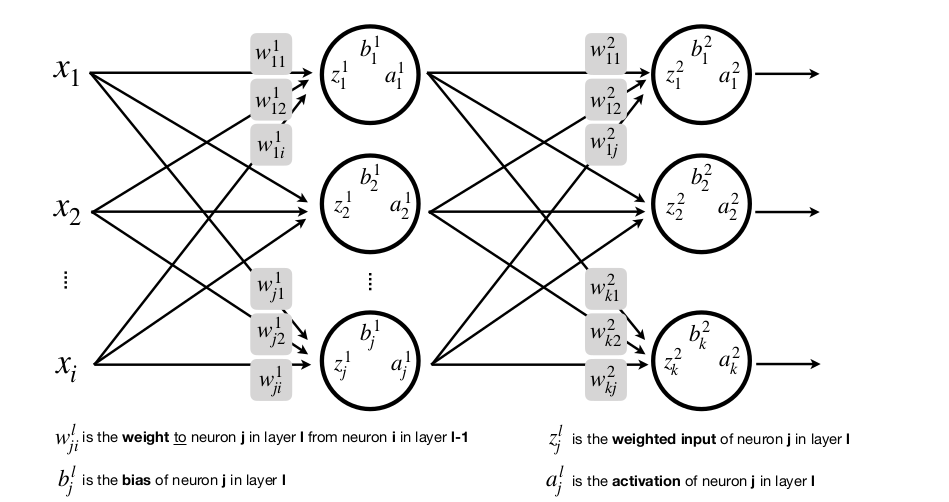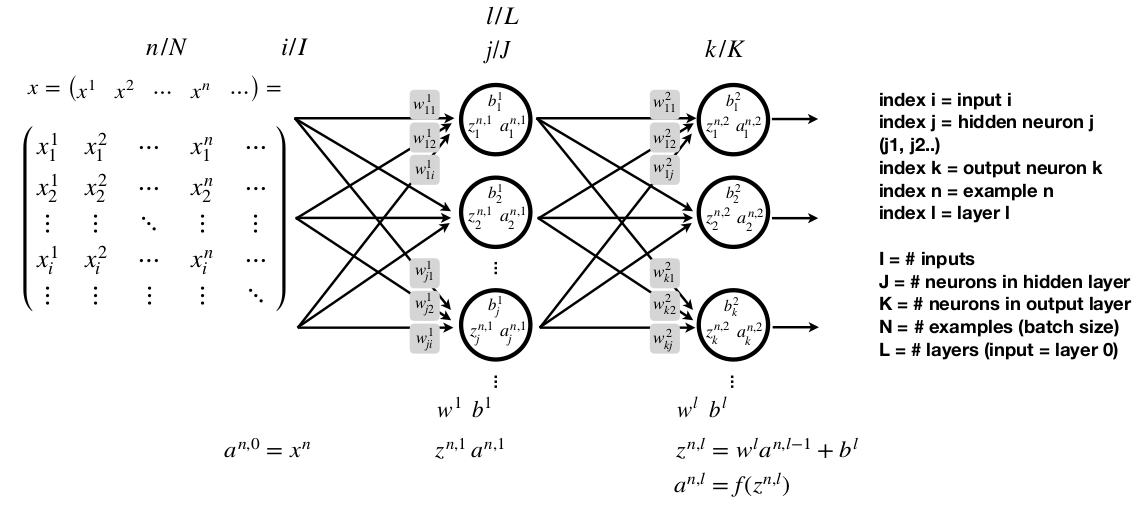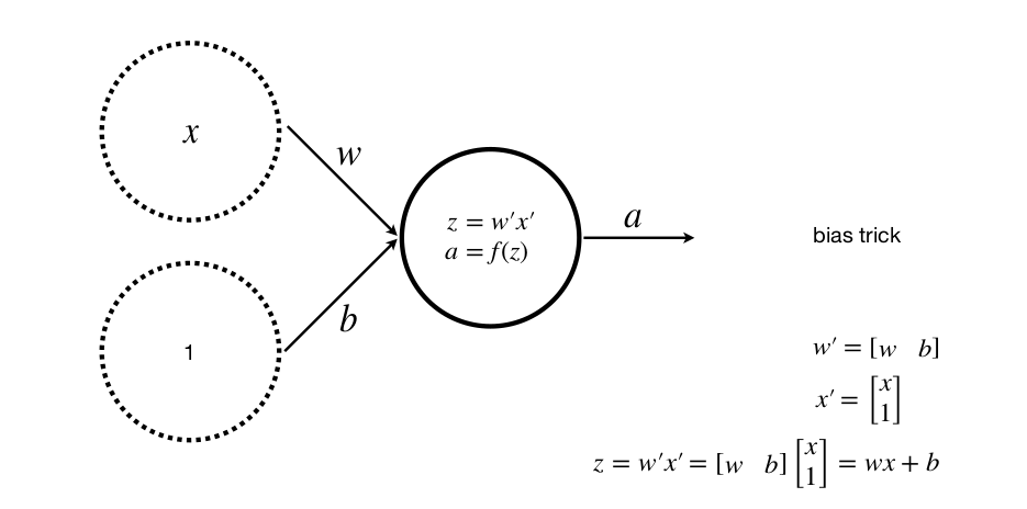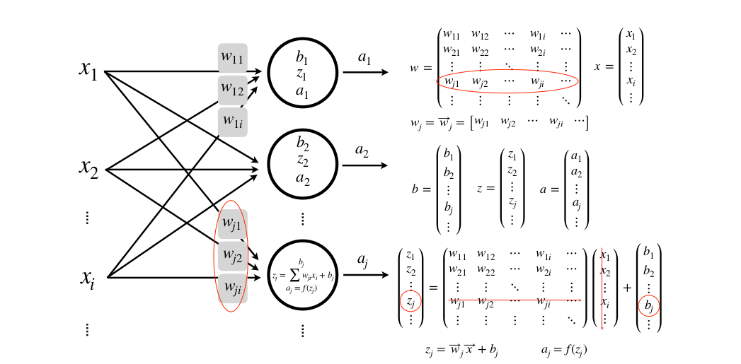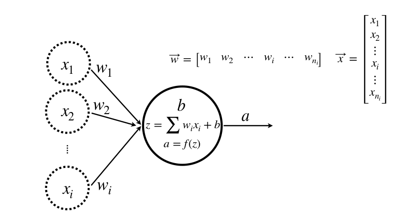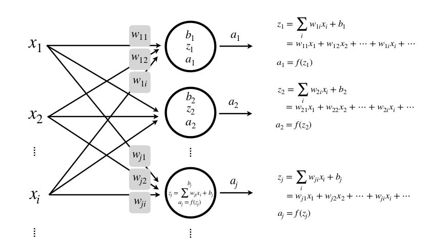 Với x là đầu vào, w là trọng số, z hay y là đầu ra, a là lớp activation với f là hàm activation