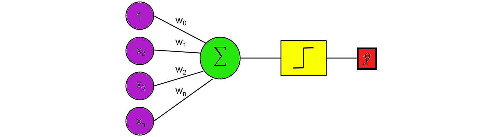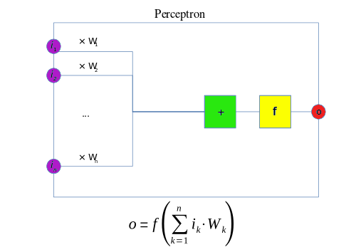 Các đầu vào và trọng số w hoạt động giống như các chất dẫn truyền thần kinh trong một tế bào thần kinh, trong đó một số có thể dương và thêm vào tổng, và một số có thể âm và trừ khỏi tổng. Chức năng của Unit Step Function hoạt động như một ngưỡng của output.