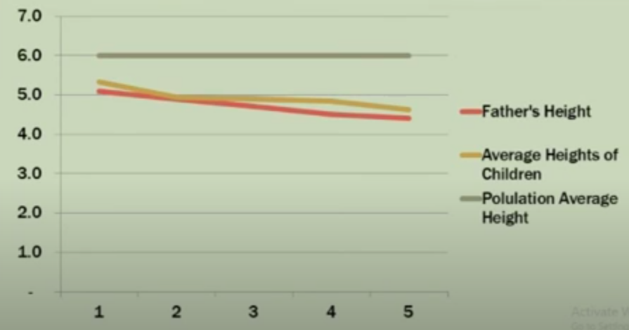 Theo lý thuyết di truyền học, thế hệ trước có chiều cao lớn hơn trung bình sẽ sản sinh ra thế hệ sau cũng cao hơn trung bình. Tuy nhiên Francis đã phát hiện ra rằng tỉ lệ cao hơn trung bình của thế hệ sau đã giảm so với thế hệ trước; đồng thời với các thế hệ sau có chiều cao thấp hơn trung bình lại có xu hướng ngược lại, tăng so với thế hệ trước.