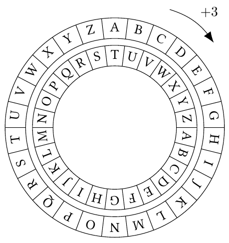Julius Caesar đã tạo ra mật mã này và lấy tên của mình đặt cho nó. Mật mã Caesar sử dụng quy tắc “xoay vòng”. Ví dụ chúng ta cho độ dịch chuyển là hai, “A” sẽ được viết là “C” và “D” sẽ được viết là “F”. Người nhận phải biết độ dịch chuyển chính xác để sử dụng để giải mã thông điệp bằng cách trừ đi độ lệch từ các chữ cái mà họ đã nhận được.