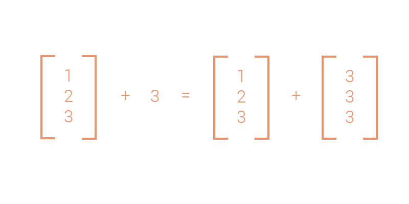 Như chúng ta thấy ở bên trên, 3 được cộng với tất cả (broadcasting) phần tử của x.