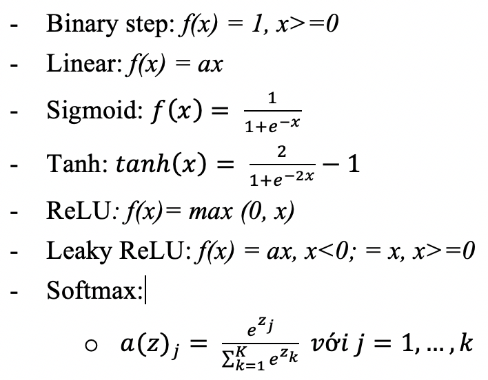 - Các hàm sigmoid và sự kết hợp của chúng thường phù hợp với những bài toán phân loại