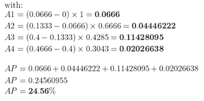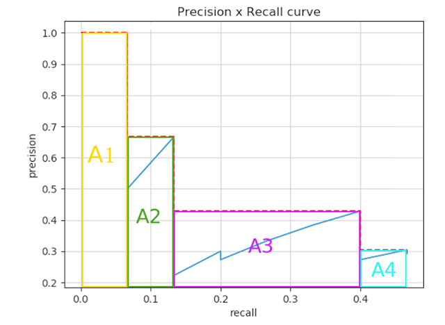 Nếu để ý kĩ thì công thức tính của 11 – point interpolation chính là tổng diện tích của 4 hình chữ nhật như trên hình A1+A2+A3+A4