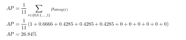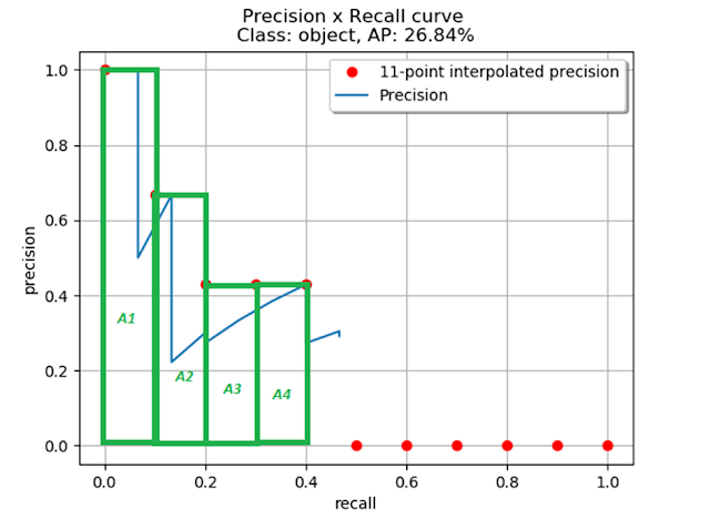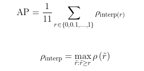 Đối với cách tính này ta sẽ chia recall từ 0 – 1 thành 11 đoạn cách đều nhau [0, 0.1, 0.2, .. 1] và lấy trung bình precision ở 11 điểm này.
