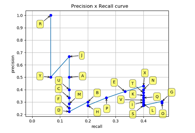 Như mình có thể thấy là precision có xu hướng giảm xuống khi ta tăng recall tất nhiên là nó không giảm đơn điệu nhưng nói chung là có xu hướng giảm.