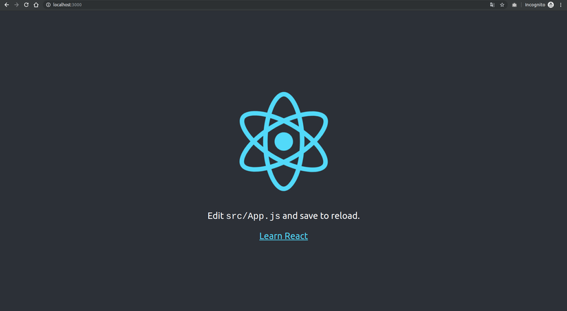 Trình duyệt mở ra, trang bắt đầu của ứng dụng React mặc định được tải và bạn sẽ có thể thấy trang sau trong trình duyệt: