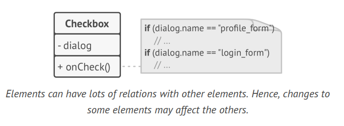 Khi nhận được thông báo này, dialog sẽ tự thực hiện việc xác thực hoặc chuyển nhiệm vụ cho các phần tử riêng lẻ. Do đó, thay vì bị ràng buộc với hàng tá phần tử biểu mẫu, button chỉ phụ thuộc vào lớp dialog.