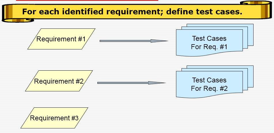 Đảm bảo rằng trường hợp kiểm thử phải bao gồm tất cả các chức năng được đề cập trong tài liệu SRS và tài liệu ca sử dụng. Nên sử dụng ma trận theo dấu yêu cầu để đảm bảo rằng tất cả các yêu cầu đều được kiểm tra.