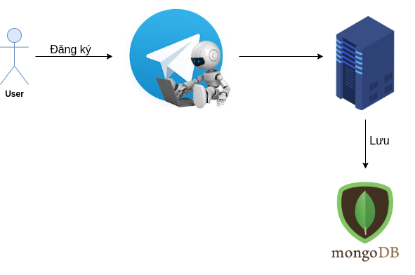 Đăng ký: Người dùng sẽ đăng ký nhận airdrop thông qua BOT trên Telegram với một số điều kiện như join box chat Telegram, follow twitter hay retweet. Khi người dùng hoàn thành các bước đăng ký thì con BOT sẽ gọi đến server Node.js và lưu thông tin của người dùng vào MongoDB.