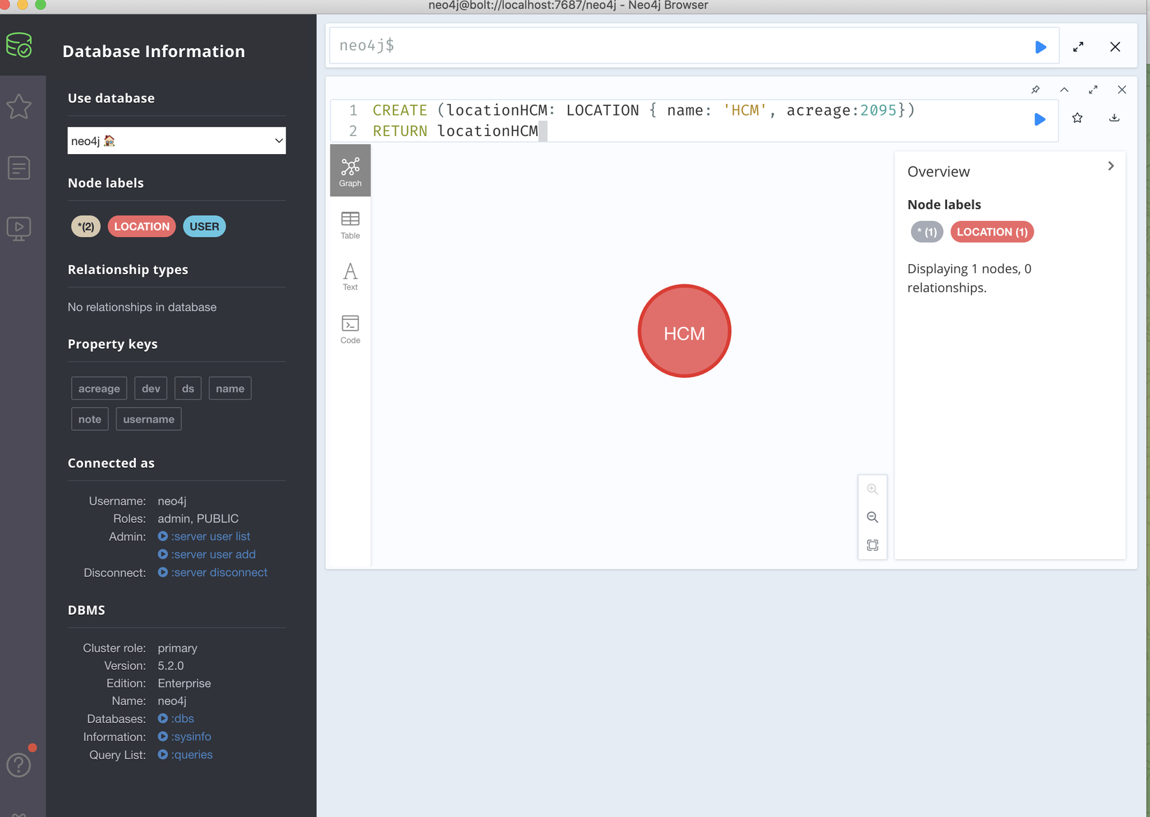 Link: https://neo4j.com/docs/cypher-manual/current/clauses/create/ cũng khá tương tự SQL nên là cứ copy past ra là nó y chang