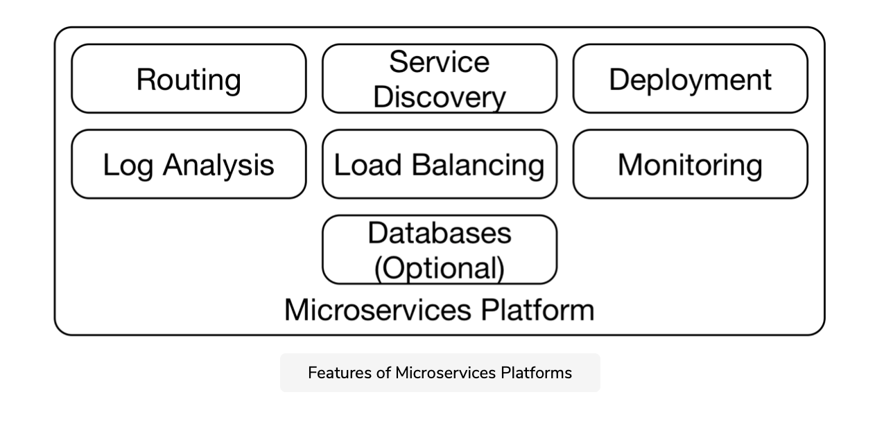 Những platform nhằm cung cấp giải pháp cho những vấn đề thường gặp. Một vài platform đáng lưu ý là Kubernetes và Docker, rất quan trọng cho việc vận hành microservice. PaaS và Cloud Froundry cũng hữu ích nhưng không phổ biến.