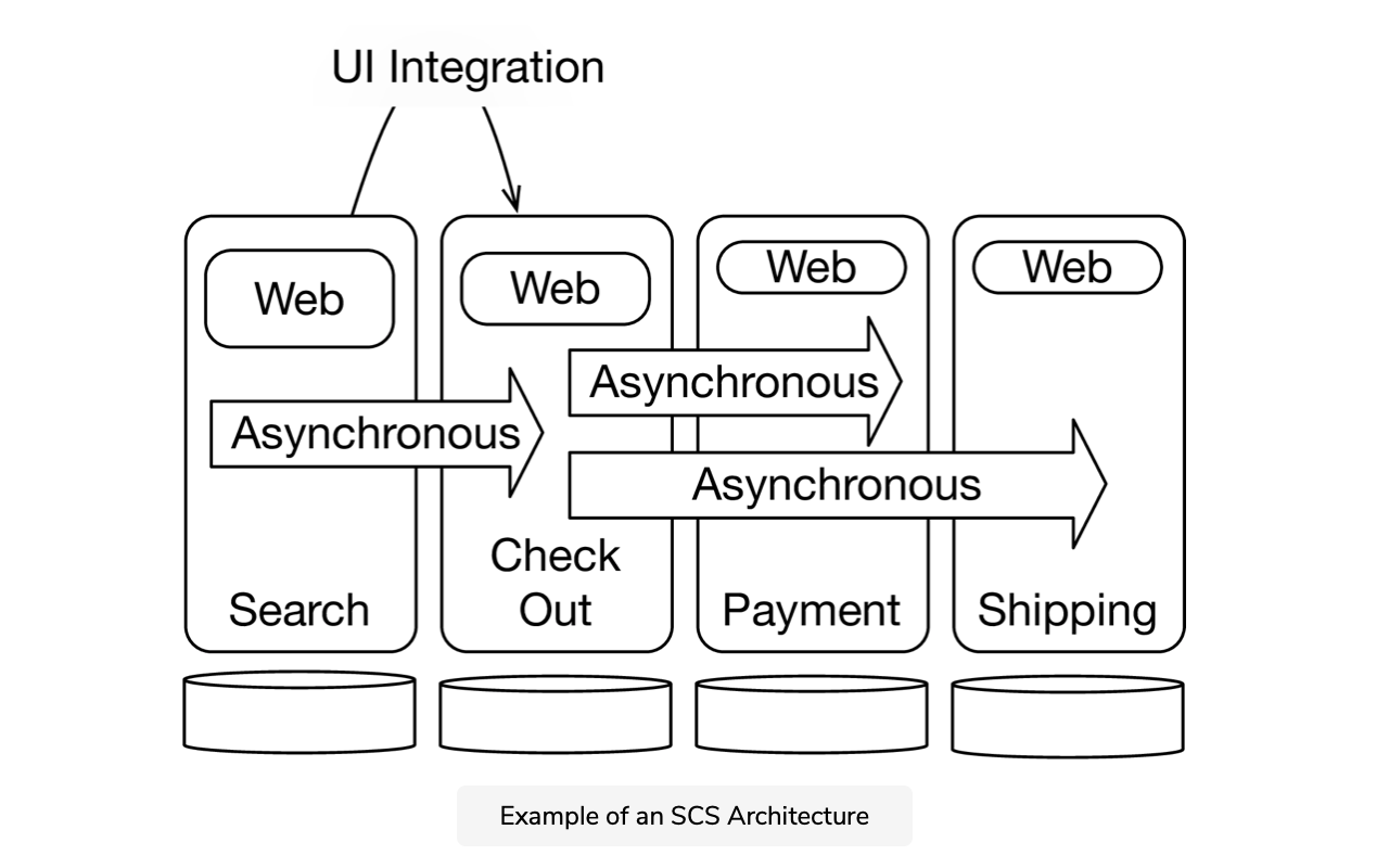 Chẳng hạn, một SCS cho một payment microservice có thể lưu thông tin liên quan đến thanh toán, nó cùng cài đặt giao diện để hiển thị lịch sử thanh toán, và dữ liệu về khách hàng có thể sao chép từ các SCS khác.