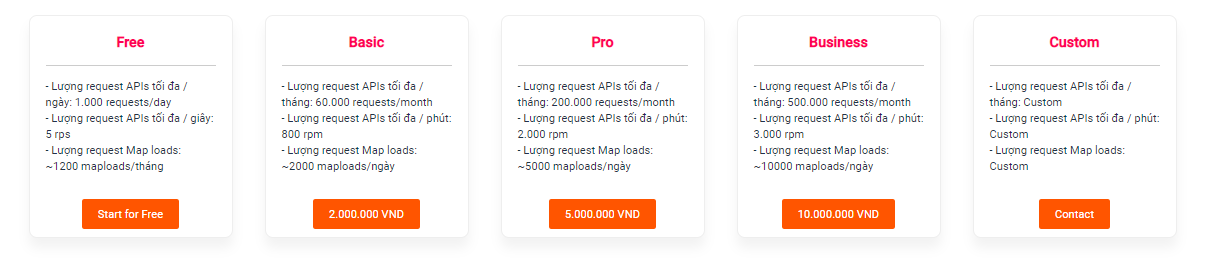 - Có Rest APIs (gồm: Geocode, Direction, Distance matrix, Search, Autocomplete)