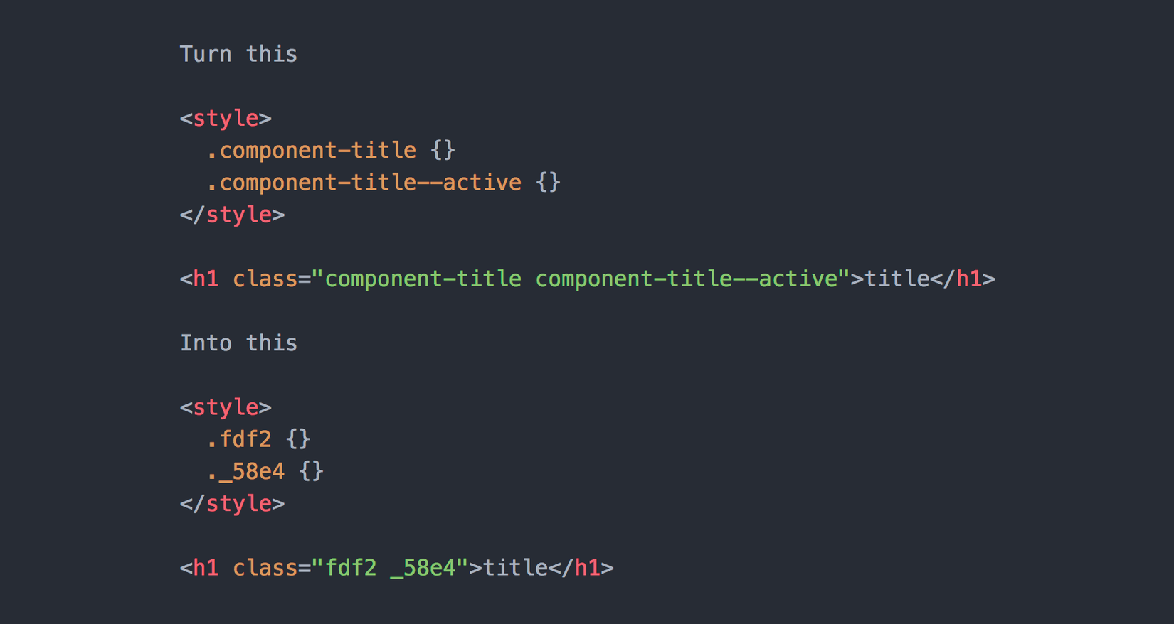 Obfuscated CSS class names == Giảm kích thước file == Giảm thời gian để truyền trải qua mạng.