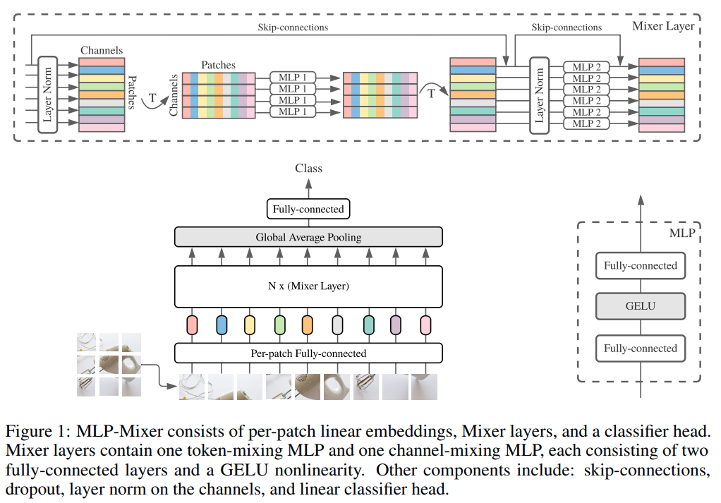 Tiếp nối truyền thống tre chưa già mà măng đã mọc, kiến trúc MLP-Mixer được nhóm tác giả đề xuất và được cho là đơn giản hơn các mô hình trước đây nhưng không hề thua kém về hiệu xuất khi không sử dụng đến các lớp convolution hay cơ chế self-attention. Thay vào đó kiến trúc của Mixer hoàn toàn dựa trên perceptron nhiều lớp, thứ được áp dụng nhiều lần trên thông tin không gian cũng như các đặc trưng theo channel.