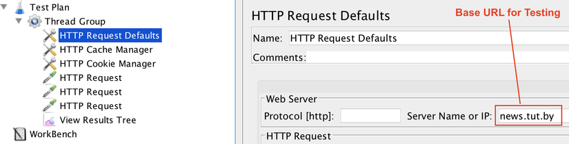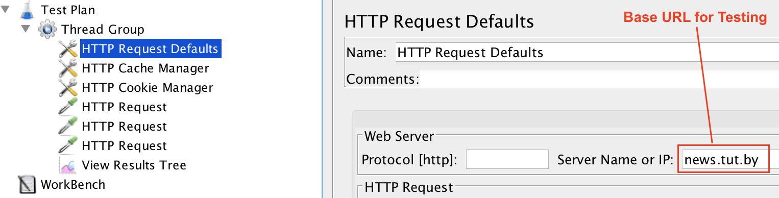 Để trích dẫn, “phần tử này cho phép bạn đặt các giá trị mặc định mà HTTP Request controllers của bạn sử dụng. Ví dụ: nếu bạn đang tạo Test Plan với 25 HTTP Request controllers và tất cả các yêu cầu đang được gửi đến cùng một máy chủ, bạn có thể thêm một phần tử HTTP Request controllers duy nhất với trường "Tên máy chủ hoặc IP" được điền vào. Sau đó , khi bạn thêm 25 HTTP Request controllers, hãy để trống trường "Tên máy chủ hoặc IP". Bộ điều khiển sẽ kế thừa giá trị trường này từ phần tử HTTP Request Defaults. "