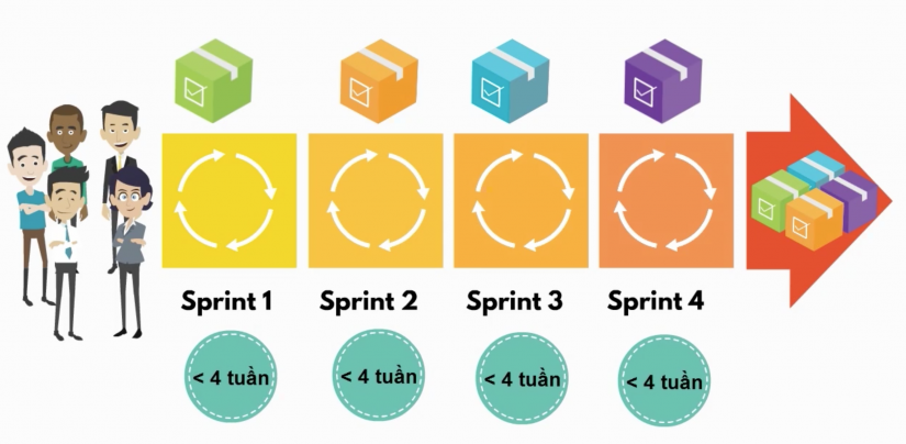- Mỗi 1 sprint thường kéo dài từ 1 đến 4 tuần (không dài hơn 1 tháng)