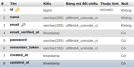Ban đầu bảng user sẽ có 1 số thông tin như sau