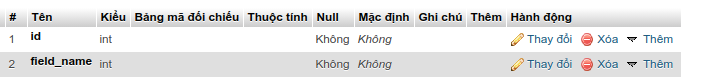 - Tiếp theo ta tạo bảng user_fields: bảng này trong mô hình EAV gọi là bảng Attribute (thuộc tính) có các trường dữ liệu (id, field_name là ') bảng này dùng để lưu các tên thuộc tính của user ví dụ cần lưu thêm phone user hay thêm address của user thì chúng ta cần insert thuộc tính đó vào bảng này