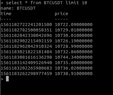 Trong mỗi measurement sẽ có 2 trường là time và price là thời gian và giá tiền tương ứng được quy đổi theo USD