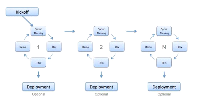 - Ko thực hiện đầy đủ toàn bộ yêu cầu/ nghiệp vụ của hệ thống vào code và testing cùng 1 lúc ( như quy trình truyền thống) mà sẽ chia các Yêu cầu ra làm theo từng giai đoạn (Sprint). Mỗi 1 giai đoạn chỉ làm 1 số lượng yêu cầu nhất định
