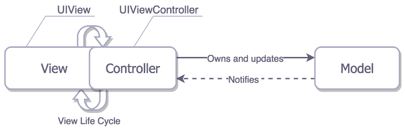 Cocoa MVC khuyến khích bạn viết Massive View Controllers, bởi vì họ cho là liên quan đến vòng đời của View (View’s life cycle) thật khó mà tách riêng được. Mặc dù bạn vẫn có khả năng giảm tải một số business logic và chuyển dữ liệu đến Model, bạn không có nhiều sự lựa chọn khi nói đến giảm tải cho View, tại hầu hết thời gian trách nhiệm của View là gửi thao tác của người dùng đến Controller. ViewController sẽ xử lý thông qua delegate và datasource và nó thường chịu trách nhiệm cho việc gửi đi (dispatching) và hủy bỏ (cancelling) các network request.