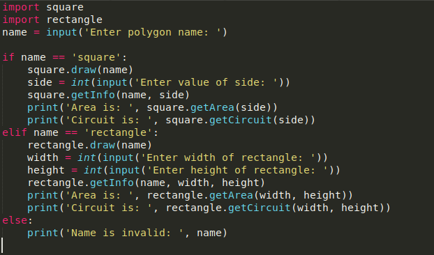 - Module square dùng để chứa các đoạn code xử lý riêng cho square.