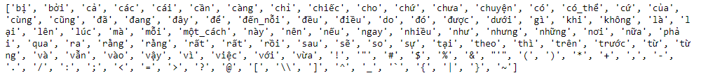 - Làm sạch data loại bỏ stop_word , những từ không phải alphabet được remove