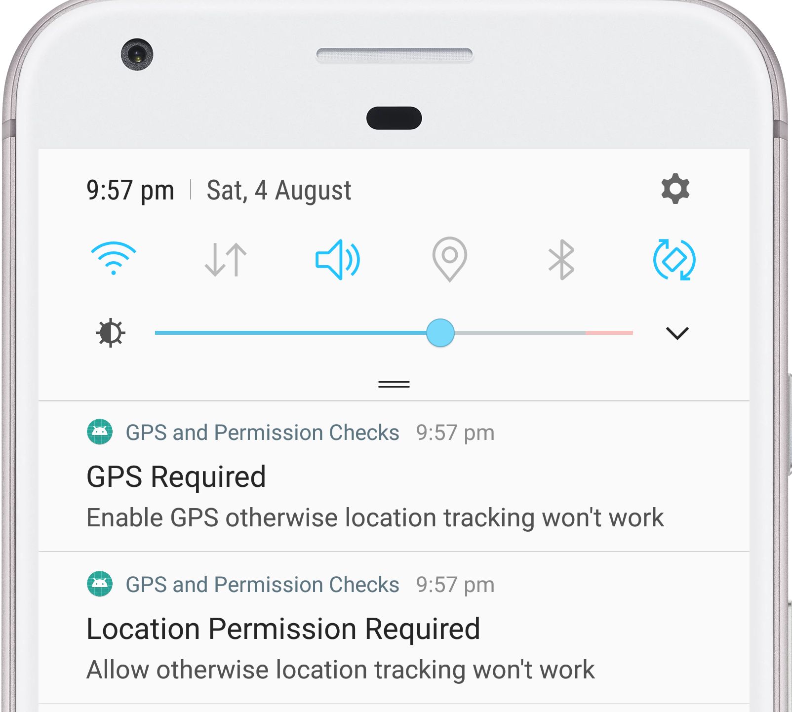 Nếu tại thời điểm sự kiện start service bắt đầu, một hoặc nhiều yêu cầu là không đầy đủ thì các thông báo tương ứng được tạo và service bị dừng lại. Điều tương tự cũng xảy ra khi service đã sẵn sàng chạy trong khi GPS bị tắt hoặc Location permission bị thu hồi.