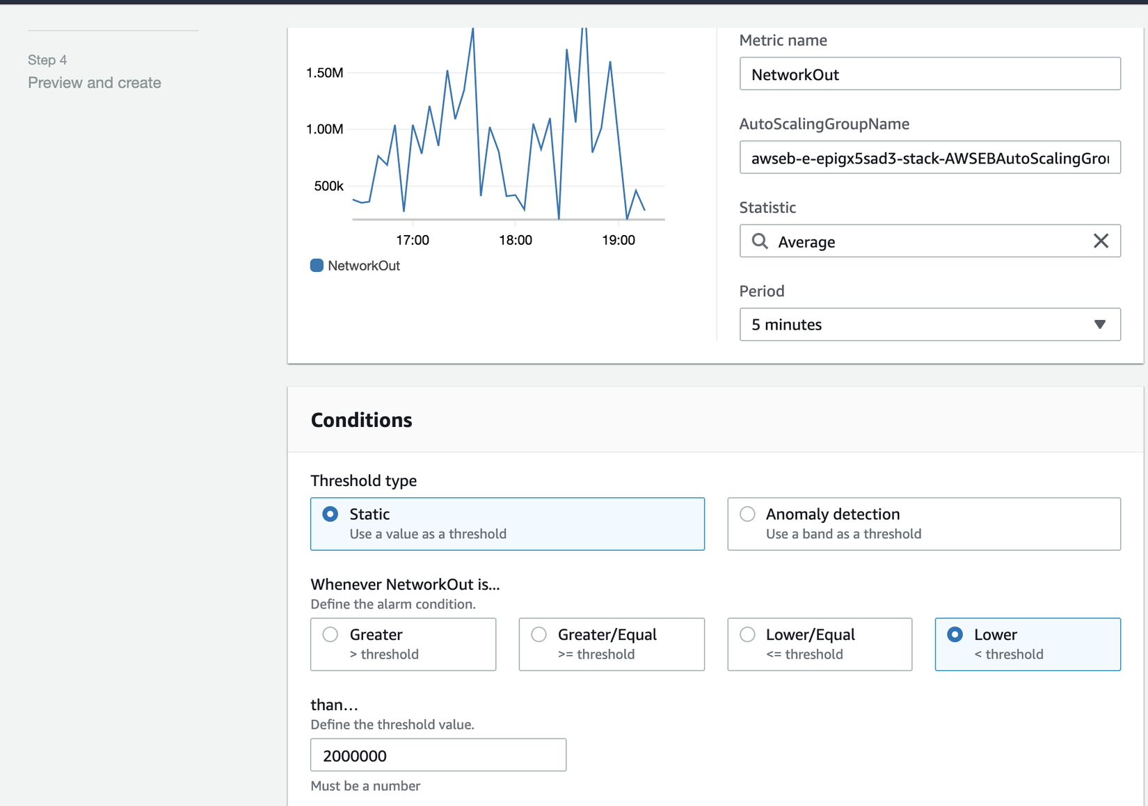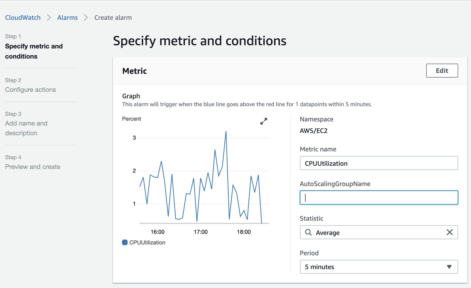 3. Alarms : Chúng ta có thể tạo cảnh báo cho bất kỳ tài nguyên nào cần giám sát như EC2, S3, EBS, RDS, billing. Mỗi một cảnh báo sẽ thực hiện một hoặc nhiều actions phụ thuộc vào số liệu vượt ngưỡng một hay nhiều lần trong một khoảng thời gian. Những actions này có thể là EC2 actions, auto scalling, hoặc notification cho SNS topic. Chúng ta có thể tạo cảnh báo cho các chức năng khác nhau như: bắt đầu, dừng, xoá hay khôi phục phiên bản EC2 , tuy nhiên tối đa chỉ có thê tạo 5000 cảnh báo.