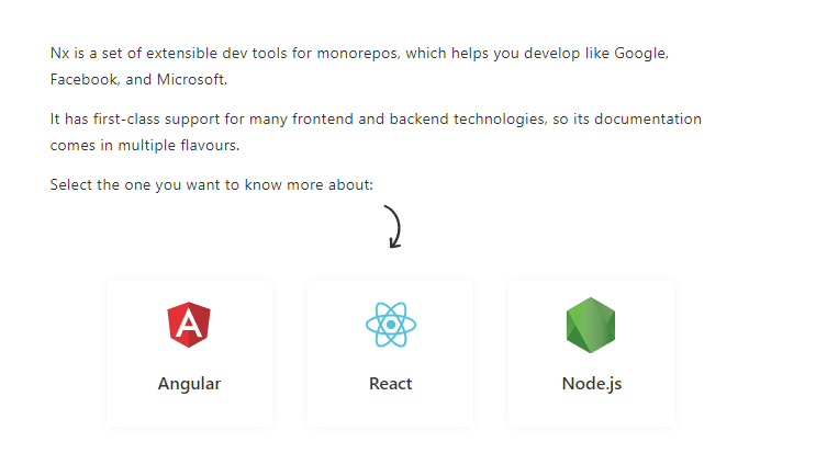 Qua phần giới thiệu ngắn gọn ta có thể biết qua rằng Nx là một bộ công cụ dùng để tạo các monorepos. Theo như đội ngũ phát triển giới thiệu, Nx được học phát triển dựa trên những kinh nghiệm của họ trong quá trình làm việc ở các tập đoàn lớn như Google, Facebook và Microsoft. Bởi vậy họ kì vọng rằng Nx sẽ alf công cụ đắc lực hỗ trợ các lập trình viên tạo cũng như phát triển các hệ thống một cách dễ dàng với vô vàn các công nghệ frontend cũng như backend đang có hiện nay.