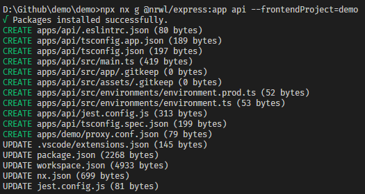 npx nx g @nrwl/express:app api --frontendProject=demo