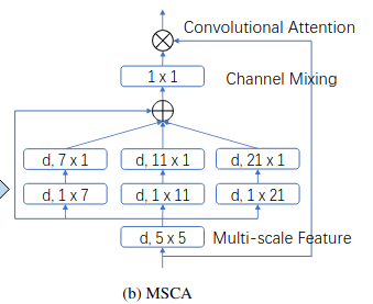MSCA tiếp tục ý tưởng phân tách một Large Kernel Conv thành các Conv nhỏ hơn. Tuy nhiên, MSCA mục đích là để sử dụng trong Segmentation nên có hơi đặc biệt hơn chút.