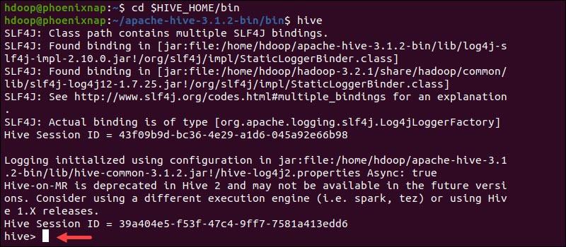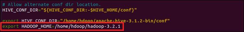 export HIVE_HOME= “home/hdoop/apache-hive-3.1.2-bin”
