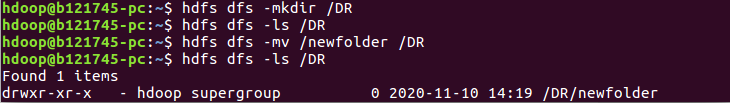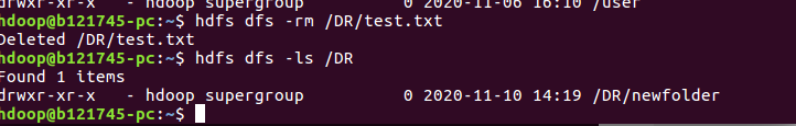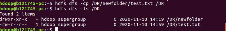 hdfs dfs -cp /DR/newfolder/test.txt /DR