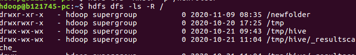 hdfs dfs -chmod g+w /user/hive/warehouse