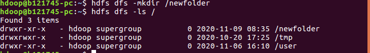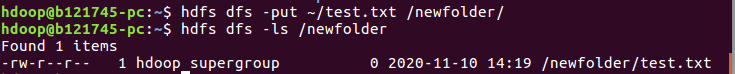 hdfs dfs -copyFromLocal ~/test.txt /newfolder/