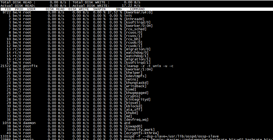Iotop cũng tương tự như lệnh top và Htop, nhưng nó có tính năng accounting để theo dõi và hiển thị thời gian thực Disk I / O và các processes. Công cụ này rất hữu ích cho việc tìm kiếm processes và đọc / ghi các processes trên disk.