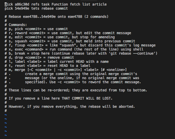git rebase -i HEAD~n // n là số commit mà chúng ta biết được thông qua câu lệnh trên nhé