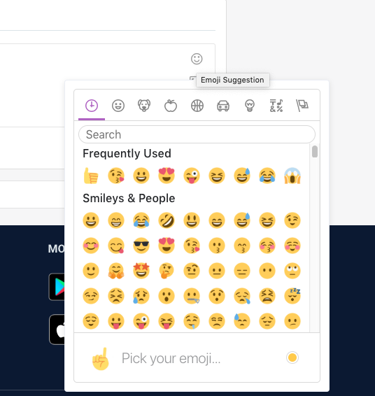 Click vào icon emoticons, popup sẽ hiện ra, cho phép bạn lựa chọn icon phù hợp
