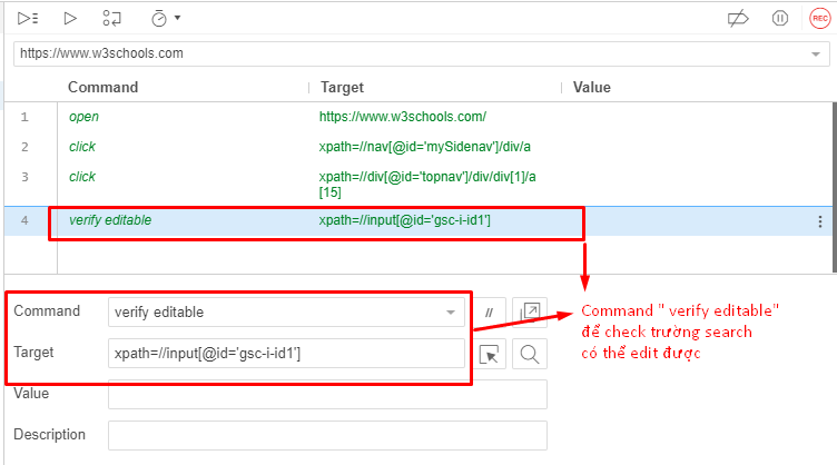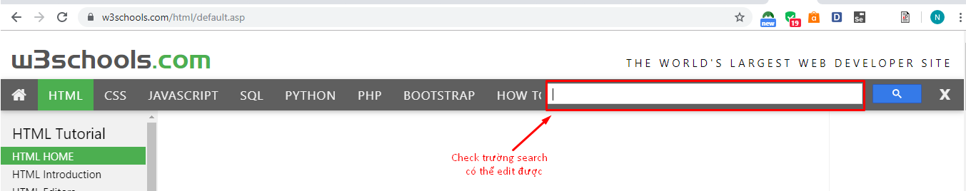 Ví dụ: Kiểm tra textbox search có thể edit được