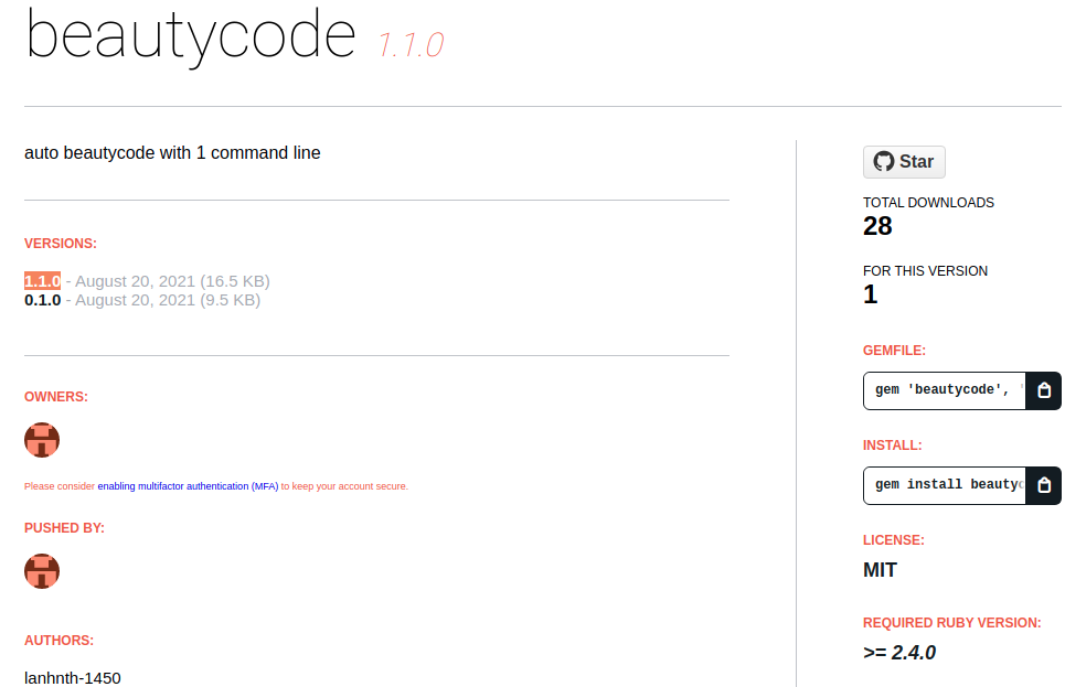 Sau 1 vài bước ở trên, mình đã build được 1 chú gem public trên đây: https://rubygems.org/gems/beautycode