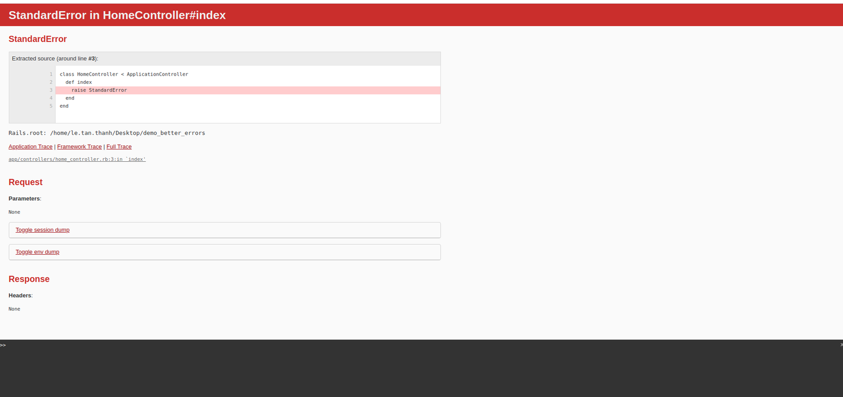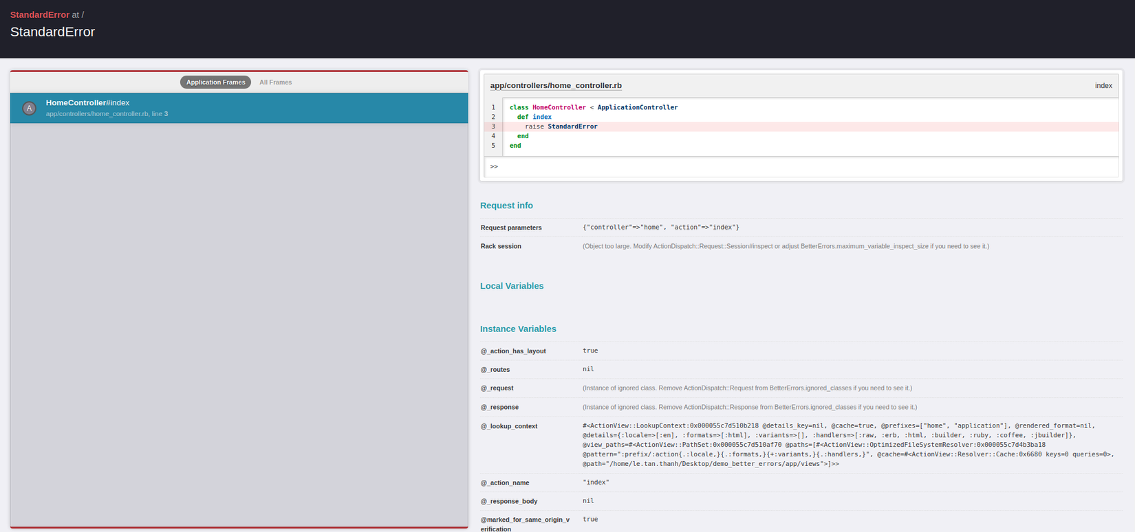 better_errorsđược dùng để thay thế trang hiển thị lỗi mặc định của Rails với nhiều chức năng hữu ích hơn