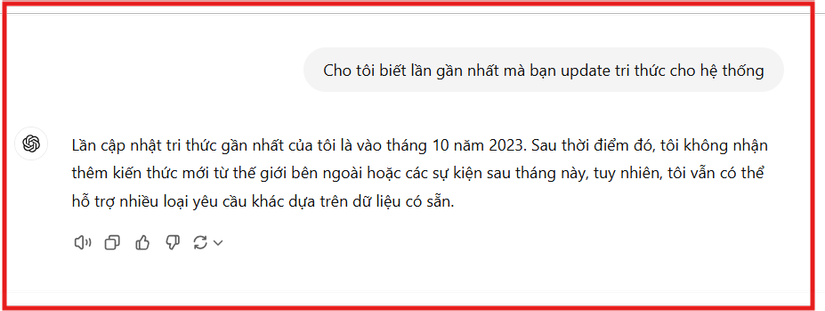 - (3) Không được kết nối với dữ liệu nội bộ: LLM sẽ không thể nào biết được nội dung trong các tài liệu nội bộ của công ty nào đó chẳng hạn,... Lỡ mà biết chắc báo động toàn công ty 👀⁉️⚠️.