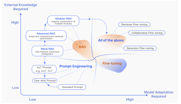 - (4) Model adaptation required: Điển hình chính là việc tinh chỉnh mô hình - fine-tuning (đào tạo bổ sung cho mô hình với tập dữ liệu để thực hiện các tác vụ cụ thể hơn). Công việc này đòi hỏi rất nhiều thời gian, công sức, chi phí và cả kinh nghiệm của người thực hiện.