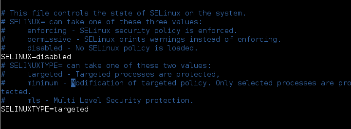 Bước 1: Truy cập vào file cấu hình SELinux theo đường dẫn /etc/selinux/config chuyển trạng thái từ enforcing sang disabled